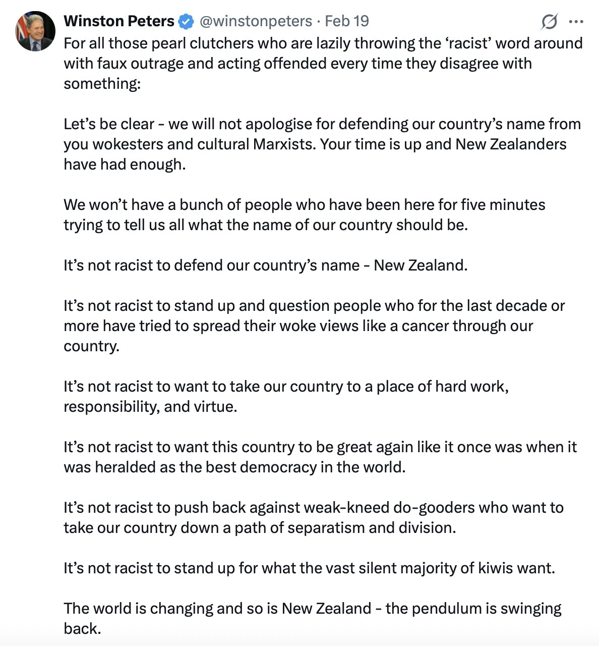 To claim as you did that he wasn’t a Kiwi because he used the word Aotearoa and has Cook Island heritage is so stupid and clearly a racist lie that you have been embarrassed into lashing out about ‘woke marxism’ like a stupid whero-neck mouth breather.