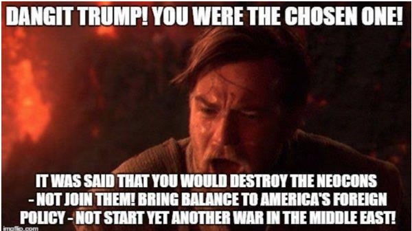 Or, for that matter, whether appointing a guy with the nickname of “Mad Dog” to the lofty position of Secretary of Defence may have lead to a certain irascibility when it comes to the Administration’s policy in Syria.