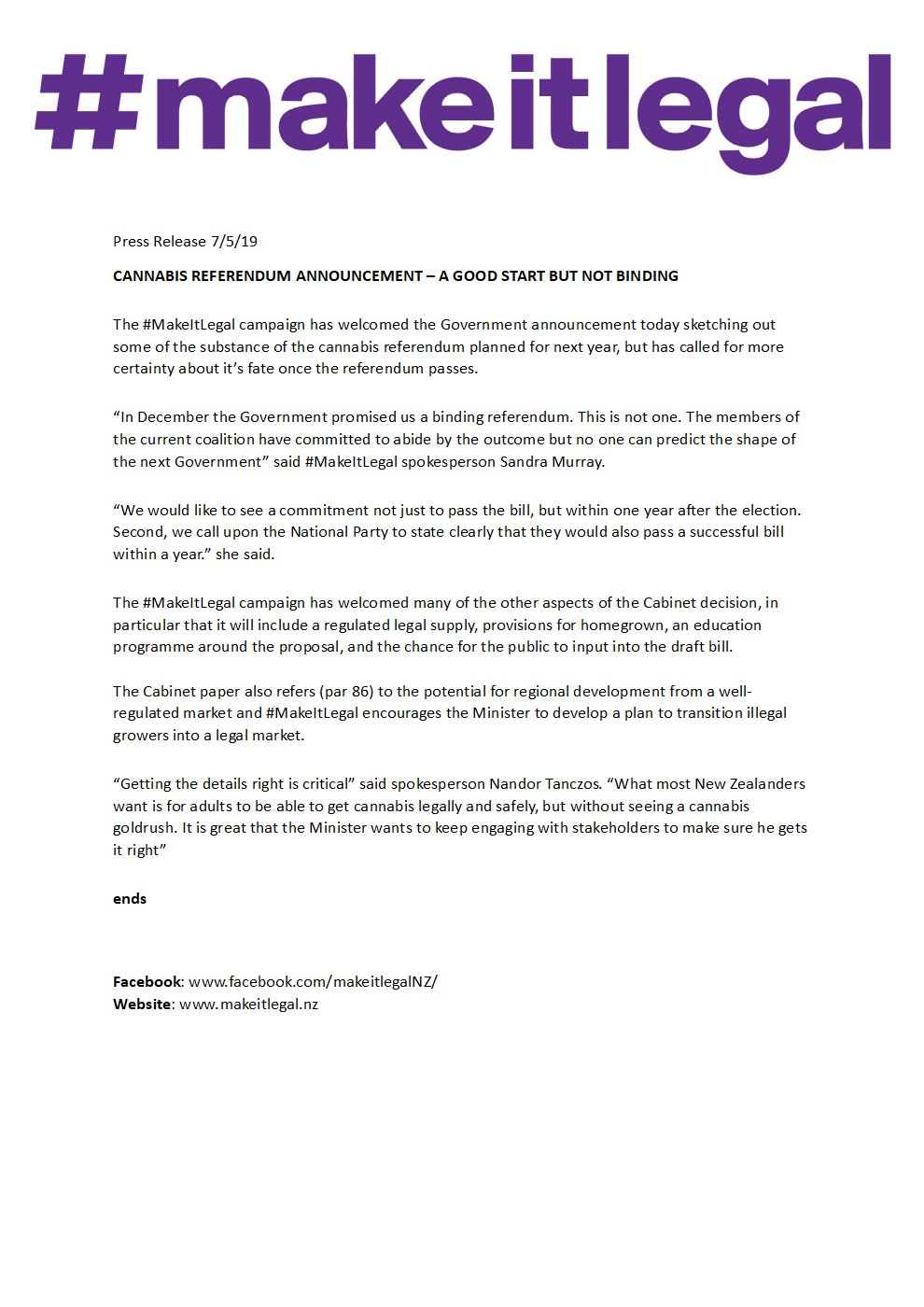 The Russel Brown’s, Chloe Swarbrick’s and Drug Foundation cheerleaders of the world are all breathlessly screaming it’s wonderful so as to gloss over the immediate back down on it not being binding…