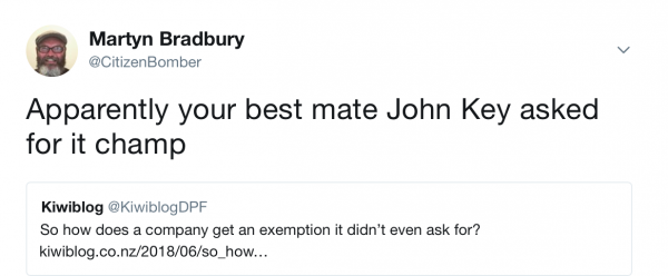 Yo Hoots, when you were insinuating that David Parker was corrupt, did your mate Key not tell you it was actually him seeking the exemption?