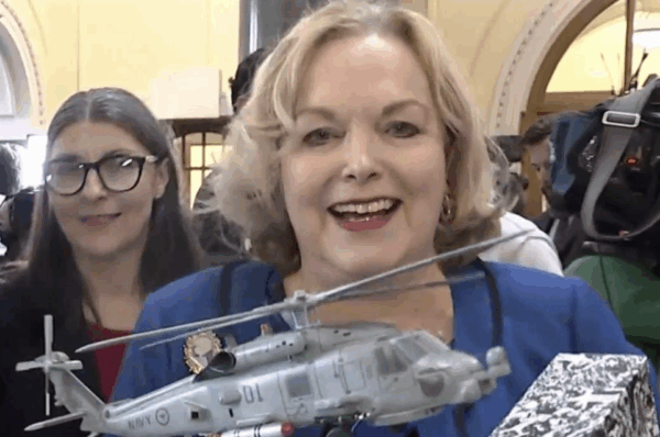 …she’s got $400million for attack helicopters, hundred of millions of the Tobacco industry, and $14.6billion for tax cuts and landlords, but no money for the people teaching our children.
